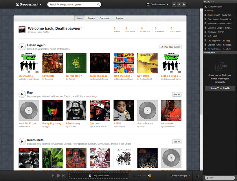 Grooveshark, özellikle genç kullanıcılar arasında hızla popülerlik kazandı. Platform, yalnızca müzik dinleme değil, aynı zamanda müzik keşfetme ve paylaşma deneyimi de sunuyordu. Kullanıcılar kendi çalma listelerini oluşturabiliyor, favori parçalarını sisteme yükleyerek diğer kullanıcılarla paylaşabiliyor ve böylece bir “topluluk arşivi” oluşuyordu.